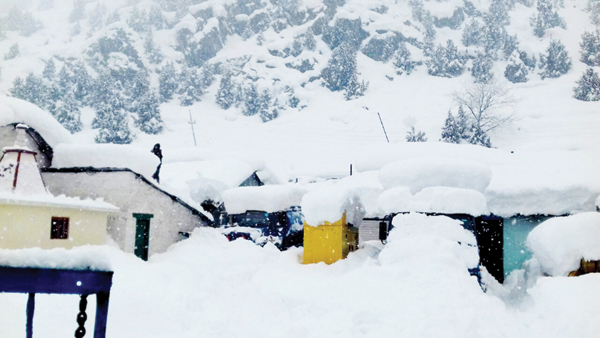 Beacon camp under snow at Gagangeer near avalanche site in Sonamarg area of Ganderbal district on Wednesday. —Excelsior/Shakeel