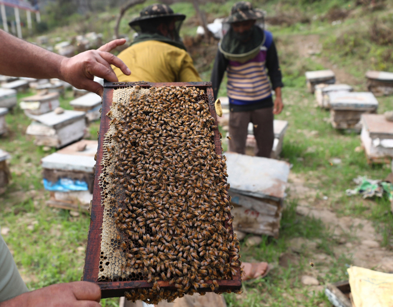 Bee farming on the outskirts of Jammu. —Excelsior/Rakesh