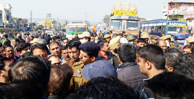 Later, Additional Commissioner Revenue Wasim Raja, Additional Superintendent of Police, Raja Adil Hamid reached the spot and pacified the protesters. They assured that necessary action would be taken into the matter following which the protesters dispersed.