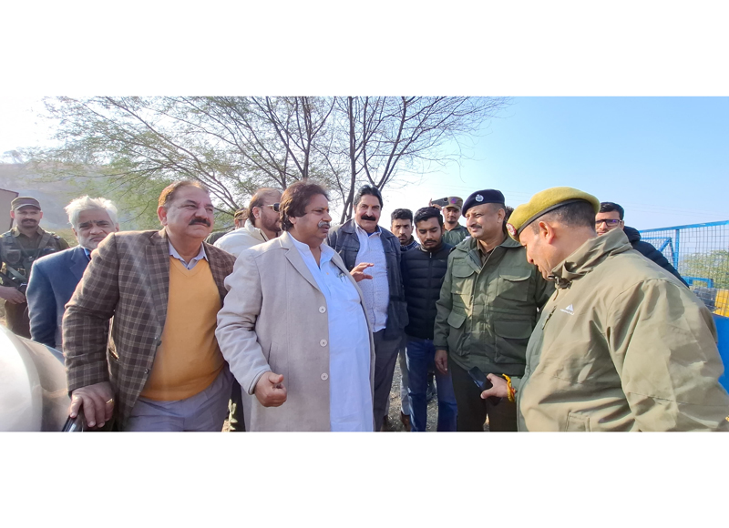 NAGROTA, Dec 26: A delegation of Congress leaders led by JKPCC working president Raman Bhalla and comprising of former Minister Yogesh Sawhney, Ved Mahajan ex-MLC, District president Jammu Urban Manmohan Singh, Satish Sharma, Ajay Lakhotra AP Singh Lucky, Anirudh Sawhney, and others, on way to Katra to meet agitating protesters over Katra Ropeway Project were today stopped at the Ban Toll Plaza by police and not allowed to proceed further.