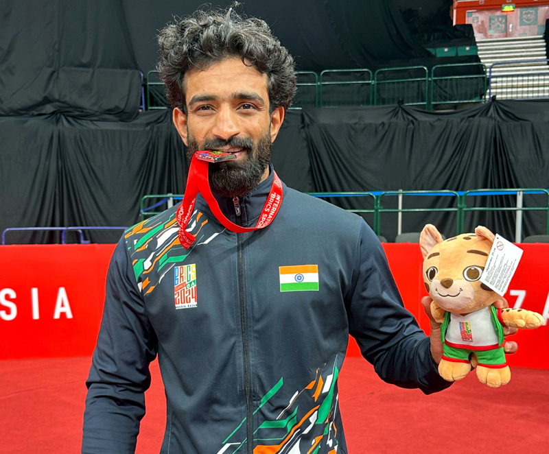 Indian Wushu team bagged 8 medals including (One Gold, 3 Silver and 4 Bronze medals) in BRICS Games held from June 11 to 17, 2024. Surya Bhanu Partap from J&K bagged the Silver medal in 65 kg category by defeating Armenia and Belarus and lost to Russia in the finals.