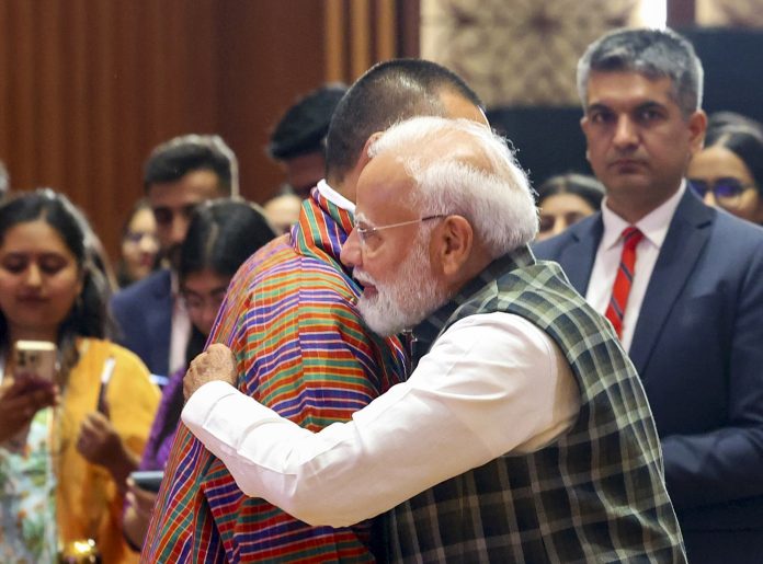 Modi warmly shook hands and hugged him after his speech, and in his own address, reciprocated Tobgay’s gesture and called him, “My brother”. (Agencies)