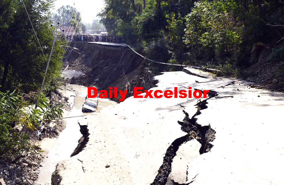Big stretch of road connecting Khanpora area in main Baramulla town sank-in and have formed a 100 feet deep gorge, disconnecting the movement of people and traffic on Baramulla¬ Muzaffarabad highway. The road constructing agency has started working on an alternate road. ….Excelsior\Aabid Nabi