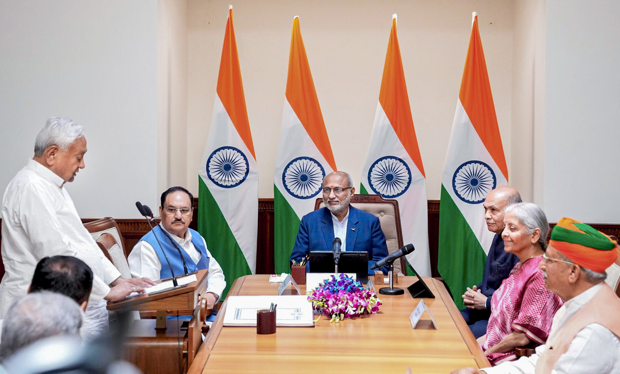JDU leader and party’s working president Sanjay Kumar Jha and Congress leader Jairam Ramesh, besides BJP MP and former union minister Rajiv Pratap Rudy were among those present during the oath-taking.