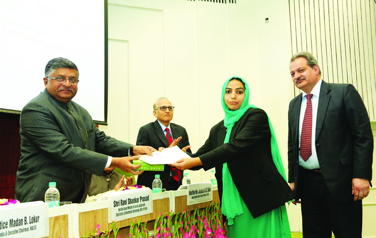 In an impressive ceremony at Vigyan Bhawan, she was awarded by Union Minister for Law and Justice Ravi Shanker Prasad. Bilquees Tantray, who had worked for Juveniles and other weaker sections of society in Srinagar district, had been nominated as best PLV by the J&K State Legal Services Authority.