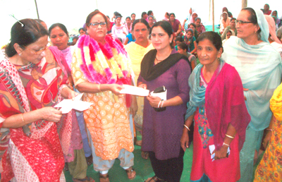 JAMMU, June 4: NC senior leader and MLA Bimla Luthra distributed Rs 10 lakh out of her Constituency Development Fund under Indira Awas Yojna (IAY) for repairing of houses among 12 beneficiaries in Bishnah today.