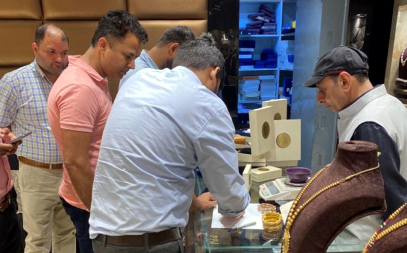 A team of BIS from Jammu and Kashmir carrying out searches in a jewellery store in Punjab on Tuesday.