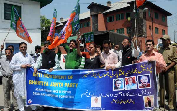 As part of the country wide programme, BJP workers and activists assembled at the Press Enclave here and raised protest against the Government for its alleged failure to check the prices of the essential commodities. The protesters said that the Government is adding to the miseries of the common masses by increasing the prices of the commodities.