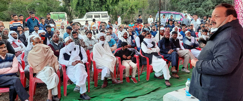 NC Provincial President Devender Singh Rana addressing election meeting on Saturday.