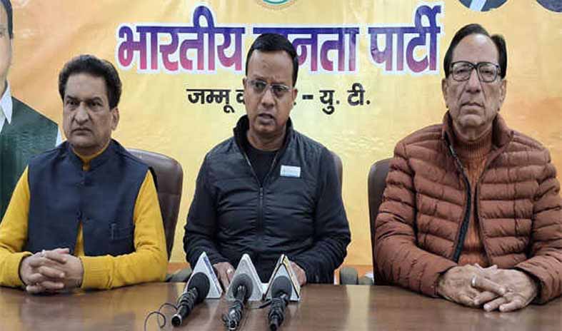 Flanked by BJP Spokespersons Y V Sharma and Balbir Ram Rattan during the press conference, Dr. Chowdhary acknowledged the commendable steps taken by the Prime Minister Narendra Modi led government, security forces, and Jammu and Kashmir Police in tackling drug trafficking.