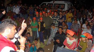 BJP candidate for Udhampur constituency, Pawan Khajuria addressing a public meeting at Kallar on Sunday.