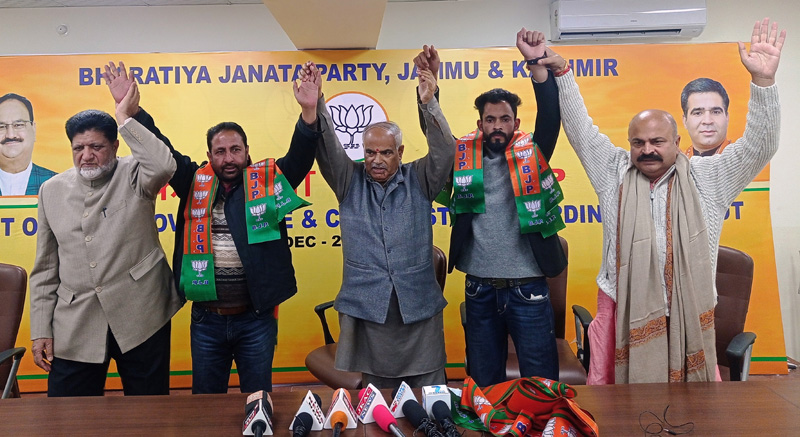 JAMMU, Dec 13: BDC Chairman from Pahalgam, Bashir Ahmad Khan and social activist Mohammad Israr Choudhary both from Dachanpora Sri Gufara, Pahalgam along with their supporters joined BJP in presence of BJP State general secretary (Org.), Ashok Koul, vice-president, Yudhvir Sethi, Prabhari ST Morcha and former Minister, Ab. Ghani Kohli at BJP Headquarter, Trikuta Ngara, here today.