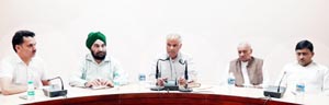 RAJOURI, May 3: BJP conducted a review meeting regarding the programmes being organized in conjunction with “Gram Swaraj Abhiyaan” at Rajouri. The meeting held at Dak Bungalow, Rajouri was presided over by BJP State general secretary (Org.) Ashok Kaul. The meeting was also attended by BJP State vice-president, Parmod Kapahi, Chairman Pahari Speaking Board, Kuldeep Raj Gupta, MLC, Vibhodh Gupta, S. Varinderjit Singh and other senior leaders.