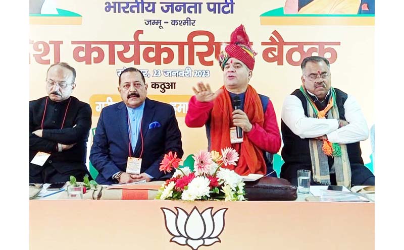 Former Deputy CM Dr Nirmal Singh who also seconded the resolution tabled by MP Jugal Kishore Sharma took a dig at Congress, NC and other Kashmir centric parties of launching a misinformation campaign. He asked why the Congress failed to take yatra when the J&K was in the grip of militancy and massacres took place in erstwhile Doda, Reasi, Poonch and Rajouri districts besides various parts of Kashmir valley. He further asked party leaders to give a befitting reply to Opposition propaganda and strengthen the party.