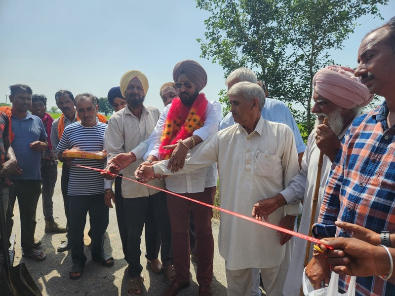 Congress leader Taranjit Singh Tony starting road blacktopping work in Suchetgarh area.
