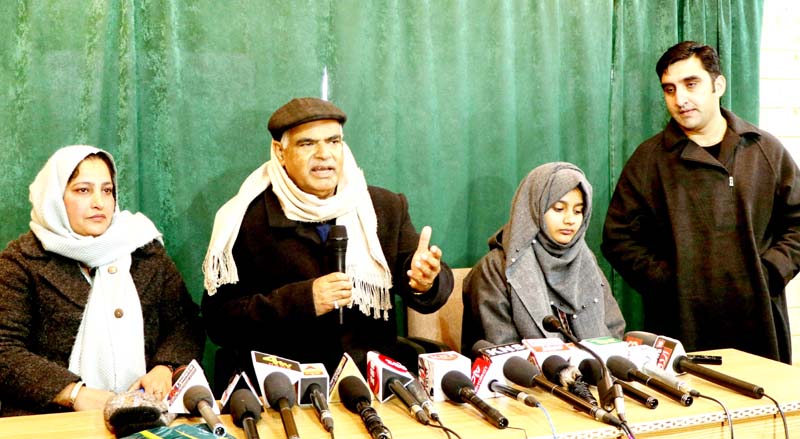BJP General Secretary Ashok Kaul addressing press conference in Srinagar on Saturday. -Excelsior/Shakeel