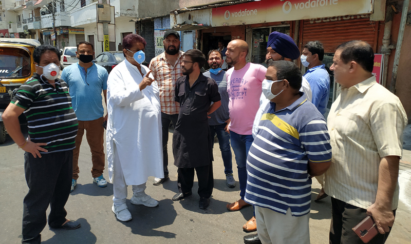 Cong leader Raman Bhalla interacting with people at Nanak Nagar in Jammu on Wednesday.