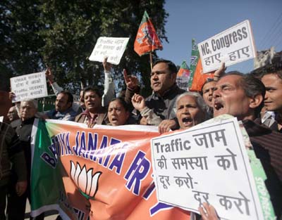 Addressing the demonstrators, Rajesh Gupta said that Government is not paying any attention for construction of three fly overs and road widening project in the city where the people face acute problems due to traffic jams.