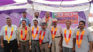 JAMMU, June 23: BJP today organised an ex-servicemen meet at Khour near Akhnoor. The meeting was attended by approximately 300-400 ESM of Khour Assembly Constituency. The meeting was organised by the Akhnoor Ex-servicemen Cell of the Bharatiya Janta Party. The meeting was chaired by Brig (Retd) Anil Gupta, State Convener of the Ex-Servicemen Cell. Daljeet Singh Chib, District President Akhnoor, Capt Bishamber Singh Jasrotia, general secretary of State Cell, Sub Ajit Kumar, Secretary State Cell and Chaman Lal Kainthia, a local BJP leader was also present in the meeting.