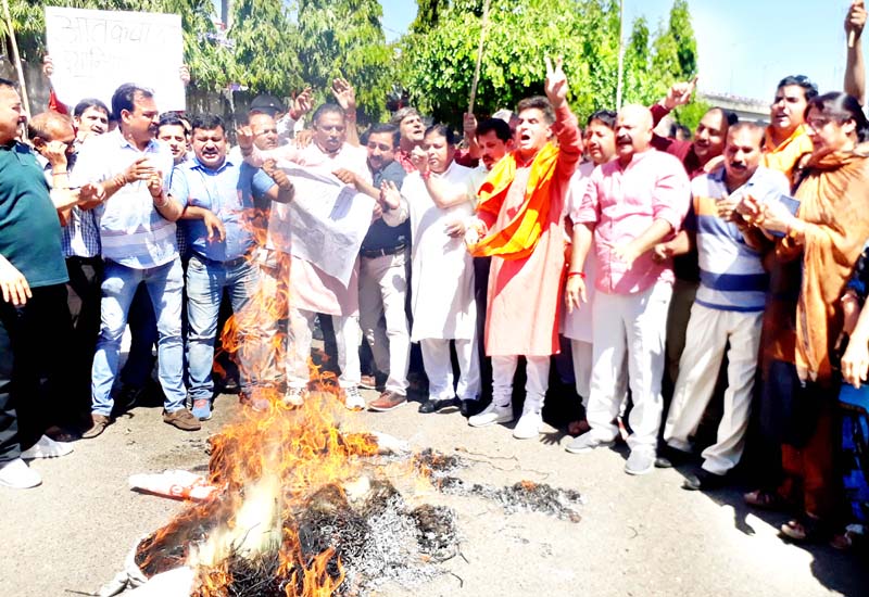 Effigy of Pakistan was torched amidst the shouting of slogans of Pakistan and terrorism down -down by the protesting partymen held under the leadership of BJP senior leaders at Press Club, here, this morning.
