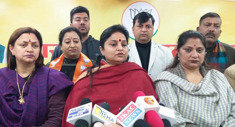 BJP leader Priya Sethi speaking to media persons in Jammu on Friday.