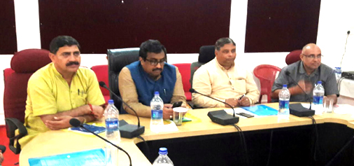 BJP leader Ram Madhav and others during a party meeting at Jammu on Wednesday.