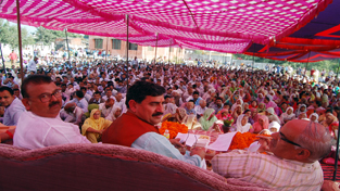 BJP leaders addressing West Pak Refugees at Swankha Morh near Vijaypur.