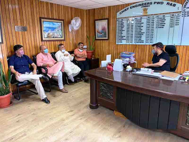 The leaders held a fruitful meeting with the Chief Engineer and it was brought to his notice that many areas in Jammu province covering all 37 Assembly constituencies are facing many difficulties regarding broken roads including various inner and outer areas of Jammu province. The leaders stated that the recently released Rupees 100 crore for macadamization of roads in Jammu province must be used judiciously and those areas which remained untouched must be kept on priority. They also stated that alternate roads must also be developed to reduce the traffic congestion in Jammu city as well. They submitted complaints of various other areas and gave the Chief Engineer a memorandum regarding grievances of the public. They urged the Chief Engineer to look into the problems of the masses and solve them.