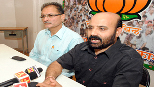 BJP leaders at a press conference at Jammu on Monday.