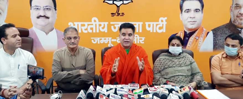 BJP leaders at a press conference at Jammu on Wednesday. — Excelsior/Rakesh