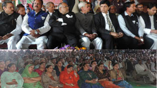 BJP leaders at an election rally at Akhnoor on Saturday.