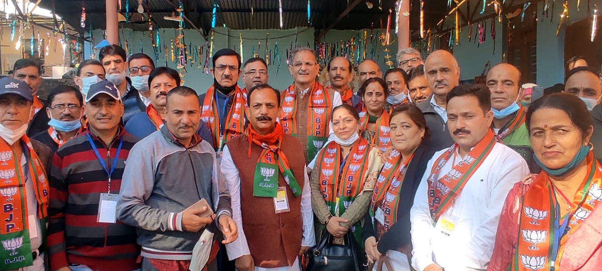 BJP leaders from Kashmiri Displaced District during a meeting at Jammu on Sunday.