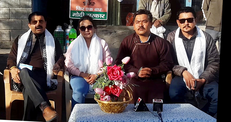 BJP leaders in a press conference at Leh on Friday. -Excelsior/ Morup Stanzin By Daily Excelsior - October 11, 2019 Share FacebookTwitterWhatsAppPinterestLinkedinCopy URLTelegramEmailTumblrReddItPrintKoo BJP leaders in a press conference at Leh on Friday. -Excelsior/ Morup Stanzin BJP leaders in a press conference at Leh on Friday. -Excelsior/ Morup Stanzin Follow our WhatsApp channel