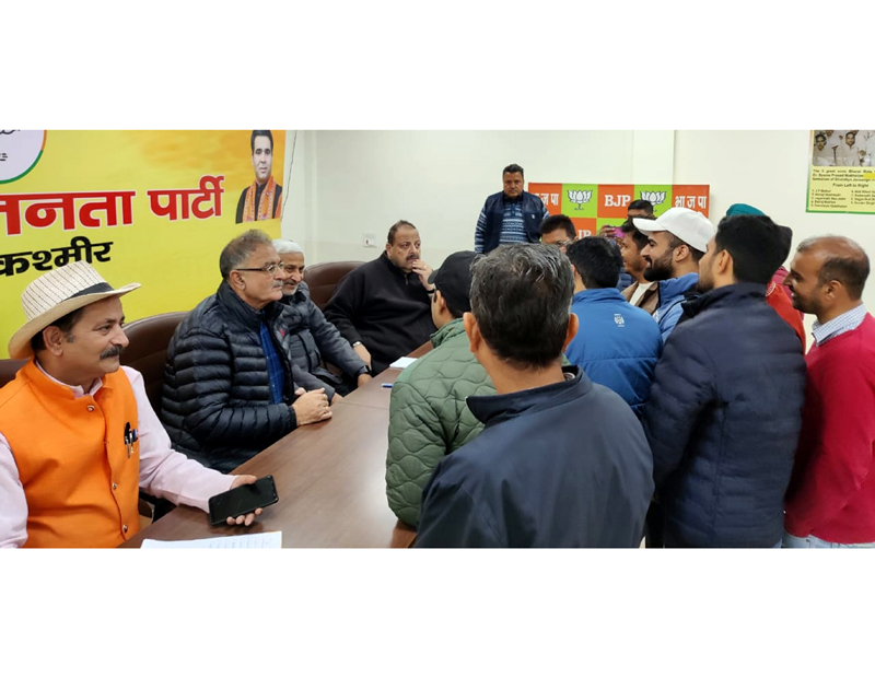 BJP leaders listening public grievances at party office Trikuta Nagar on Thursday. By Daily Excelsior - December 22, 2022 Share FacebookTwitterWhatsAppPinterestLinkedinCopy URLTelegramEmailTumblrReddItPrintKoo BJP leaders listening public grievances at party office Trikuta Nagar on Thursday. BJP leaders listening public grievances at party office Trikuta Nagar on Thursday. Follow our WhatsApp channel
