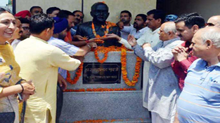 BJP leaders paying tributes to Dr Shyama Prasad Mookherjee on his Balidan Divas at Party Headquarters Trikuta Nagar on Thursday.