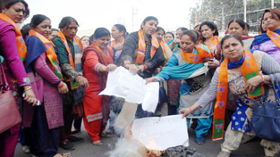 BJP Mahila Morcha activists burning effigy of Congress leader, Ghulam Nabi Azad during a protest at Jammu. By Daily Excelsior - November 18, 2016 Share FacebookTwitterWhatsAppPinterestLinkedinCopy URLTelegramEmailTumblrReddItPrintKoo BJP Mahila Morcha activists burning effigy of Congress leader, Ghulam Nabi Azad during a protest at Jammu. BJP Mahila Morcha activists burning effigy of Congress leader, Ghulam Nabi Azad during a protest at Jammu. Follow our WhatsApp channel