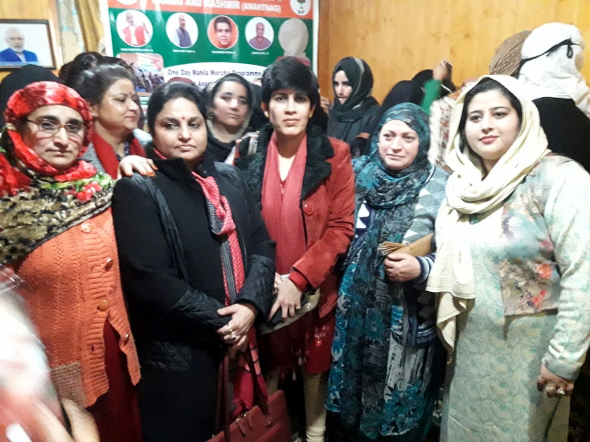 BJP Mahila Morcha leaders during a party programme at Anantnag on Wednesday. By Daily Excelsior - December 5, 2018 Share FacebookTwitterWhatsAppPinterestLinkedinCopy URLTelegramEmailTumblrReddItPrintKoo BJP Mahila Morcha leaders during a party programme at Anantnag on Wednesday. BJP Mahila Morcha leaders during a party programme at Anantnag on Wednesday. Follow our WhatsApp channel