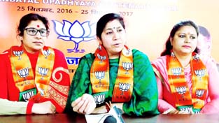 BJP Mahila Morcha leaders at a press conference at Jammu on Friday. By Daily Excelsior - March 3, 2018 Share FacebookTwitterWhatsAppPinterestLinkedinCopy URLTelegramEmailTumblrReddItPrintKoo BJP Mahila Morcha leaders at a press conference at Jammu on Friday. BJP Mahila Morcha leaders at a press conference at Jammu on Friday. Follow our WhatsApp channel