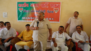 BJP Minister for Punjab Madan Mohan Mittal addressing a booth level workers camp at Samba on Thursday.