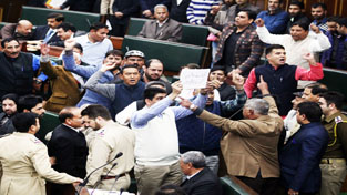 BJP MLA Ch Sukhnandan Kumar countering opposition charges against RSS in the Assembly on Tuesday.                                   -Excelsior/ Rakesh