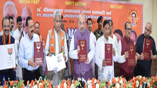 BJP National President Amit Shah and others releasing the special edition of