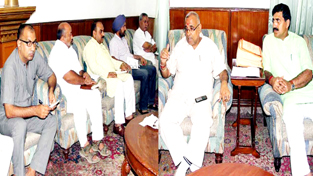 BJP national vice president Avinash Rai Khanna and Party State president Jugal Kishore Sharma in a meeting at Jammu on Wednesday.