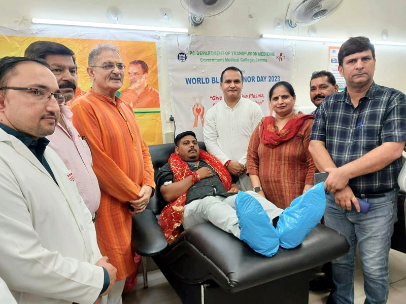 BJP OBC Morcha activist donating blood at a donation camp at GMC Jammu on Wednesday. By Daily Excelsior - September 21, 2023 Share FacebookTwitterWhatsAppPinterestLinkedinCopy URLTelegramEmailTumblrReddItPrintKoo BJP OBC Morcha activist donating blood at a donation camp at GMC Jammu on Wednesday. BJP OBC Morcha activist donating blood at a donation camp at GMC Jammu on Wednesday. Follow our WhatsApp channel