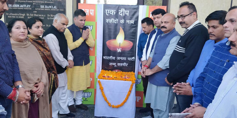 BJP State President, Ravinder Raina; Union MoS in PMO, Dr. Jitendra Singh; MP, Jugal Kishore Sharma and other senior leaders lighted earthen lamp in the memory of brave security personnel who sacrificed their lives in the honour of nation.