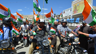 As a part of National “Sankalp Yatra” programme, Bharatiya Janata Party (BJP) Leh unit organised car and motor bike Tiranga Yatra from Leh gate to Choglamsar bridge.