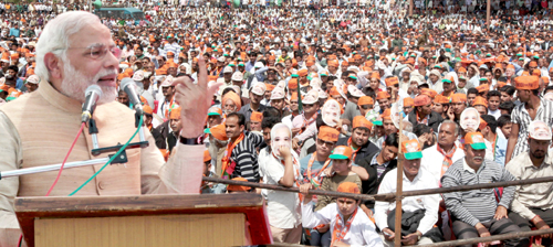 BJP Prime Ministerial candidate Narendra Modi addressing a mammoth election rally at Hiranagar on Wednesday. —Excelsior/Rakesh