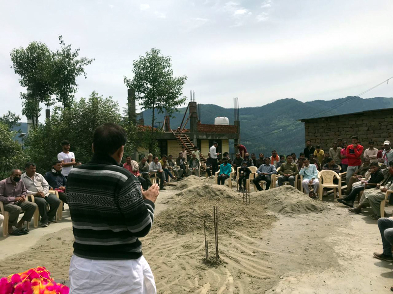 JKNPP Chairman Harsh Dev Singh addressing a public meeting in Chenani Constituency of Udhampur district.