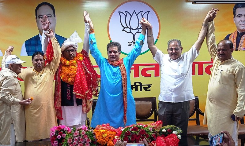 BJP senior leaders during a felicitation function of newly nominated MP Ghulam Ali Khatana at party office, Trikuta Nagar on Sunday.