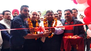 BJP State President and MLA Jammu West Sat Sharma inaugurating JS Wheels Showroom at Greater Kailash.