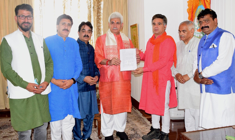 SRINAGAR, May 15: A delegation of J&K unit of Bhartiya Janta Party today met Lt Governor Manoj Sinha and submitted him a memorandum highlighting various issues of the Kashmiri Pandit employees working in the Valley under PM package and sought measures for their safety and security.